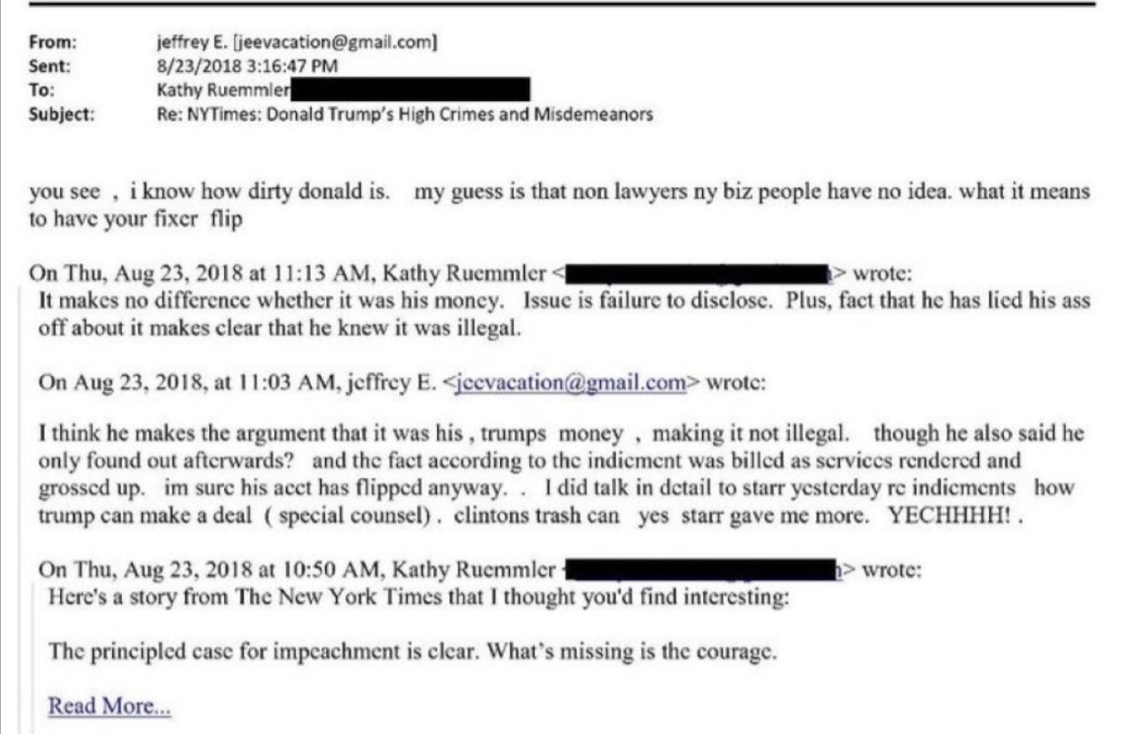 And there Epstein was, asking for her opinion on Trump. Calling Trump dangerous. Fishing for insight about Trump’s supposed issues with women. Positioning himself inside the same world that was already coordinating its strategy to damage the incoming administration.